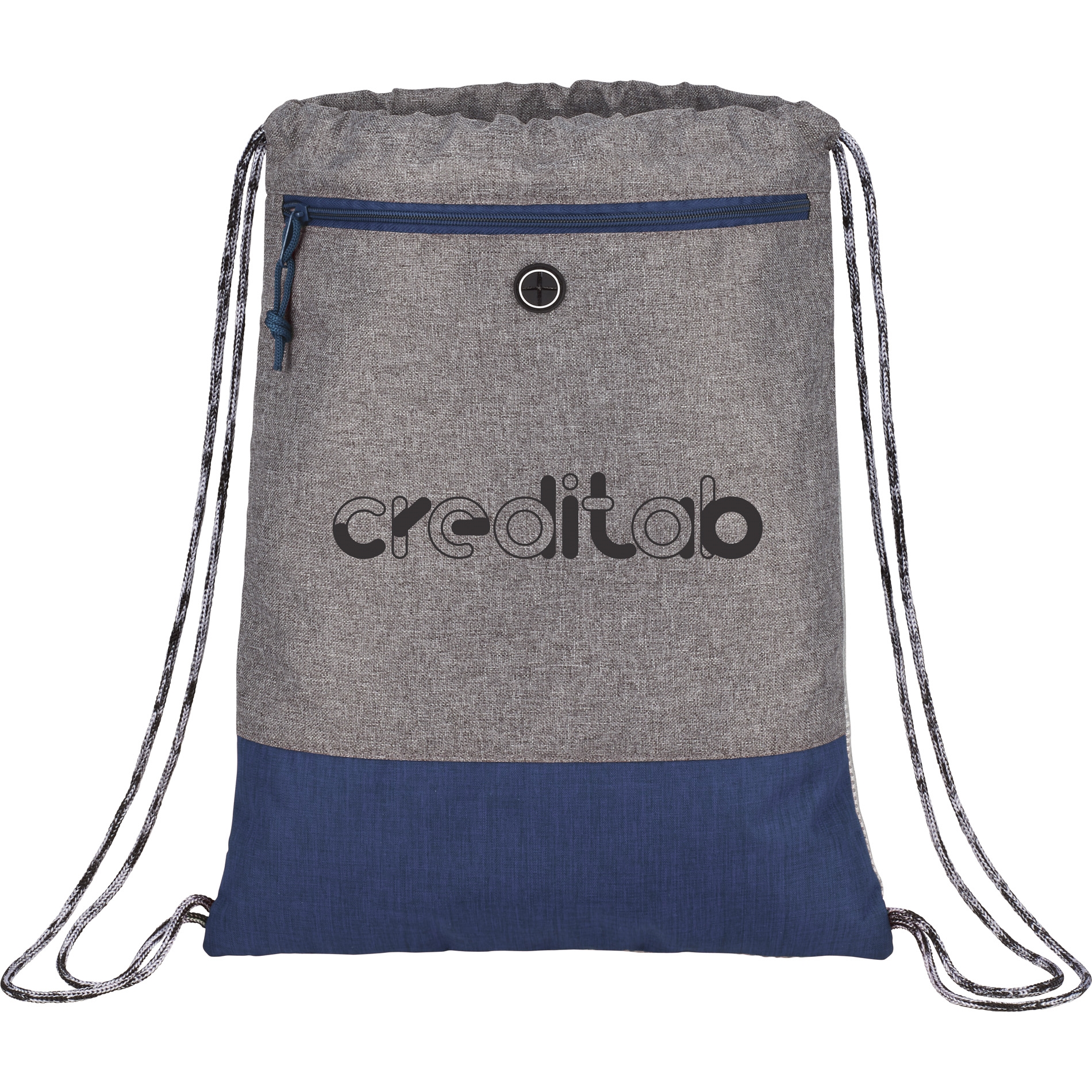 - Additional features include a convenient earbud port, a front zippered pocket for bonus storage, and deluxe drawstring cords with a trendy mélange look.