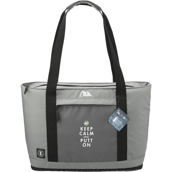 - The Arctic Zone® Repreve® 25-50 Can Expandable RPET Cooler is a great tote-style cooler that expands to hold up to 50 cans!