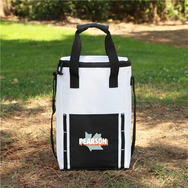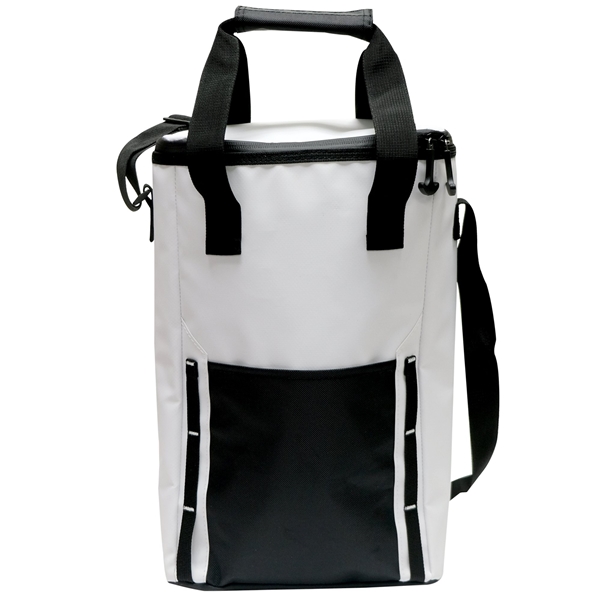 - Meet the Glacier Peak can and wine Cooler, designed for slim cooler situations. With a capacity for 12 cans or 2 1.5L bottles, it's crafted from durable and water-resistant tarpaulin and zippers that are paired with PE foam insulation. Featuring a front pocket with 2 columns of hanging loops, heavy-duty zipper pulls, and an adjustable/removable shoulder strap for convenience. With added features like a slot for a bottle opener and a double-layer divider, it ensures versatility and organization.