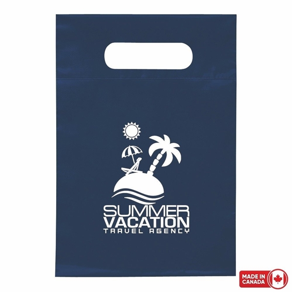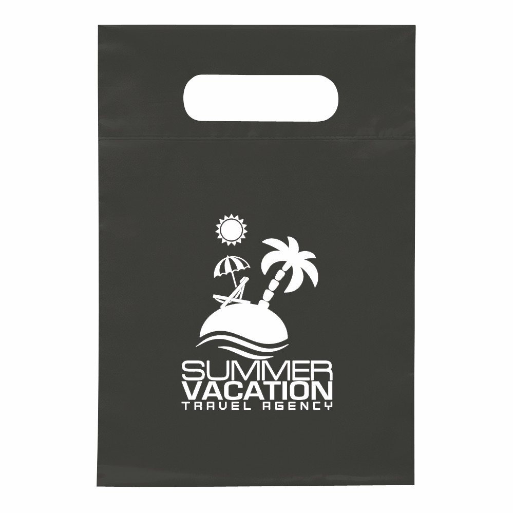 - Our non-woven die cut bag is the perfect size for those light to medium weight items where a large grocery bag would be cumbersome!