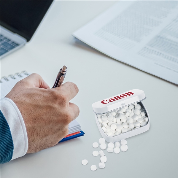 Portability? Check. These mints in their domed tin are easy to carry — from pockets to purses. Practical? Definitely. Mints are a universally appreciated giveaway, and their packaging enhances their appeal. The distinctive tin shape offers visual interest, giving your brand added impact when you hand them out.