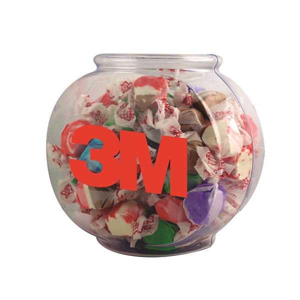 - Invest in this chewy treat for promoting your upcoming campaign! Measuring 5 1/2" W x 3 5/8" D x 5 3/8" H, this 13.5 oz fish bowl is filled with salt water taffy