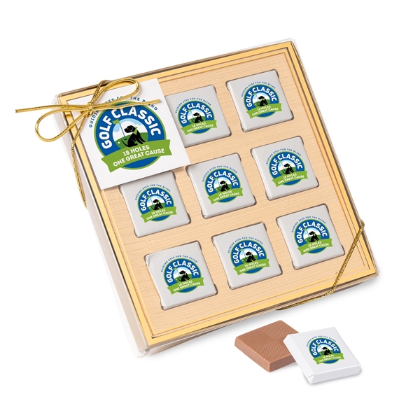 About this Promotional Nine Piece Chocolate Foiled Square Gift Box - Full Color: