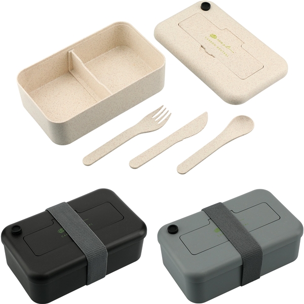 - The Bamboo Fiber Lunch Box with Utensils is made from bamboo fiber which aids in cutting down the down the use of plastic.