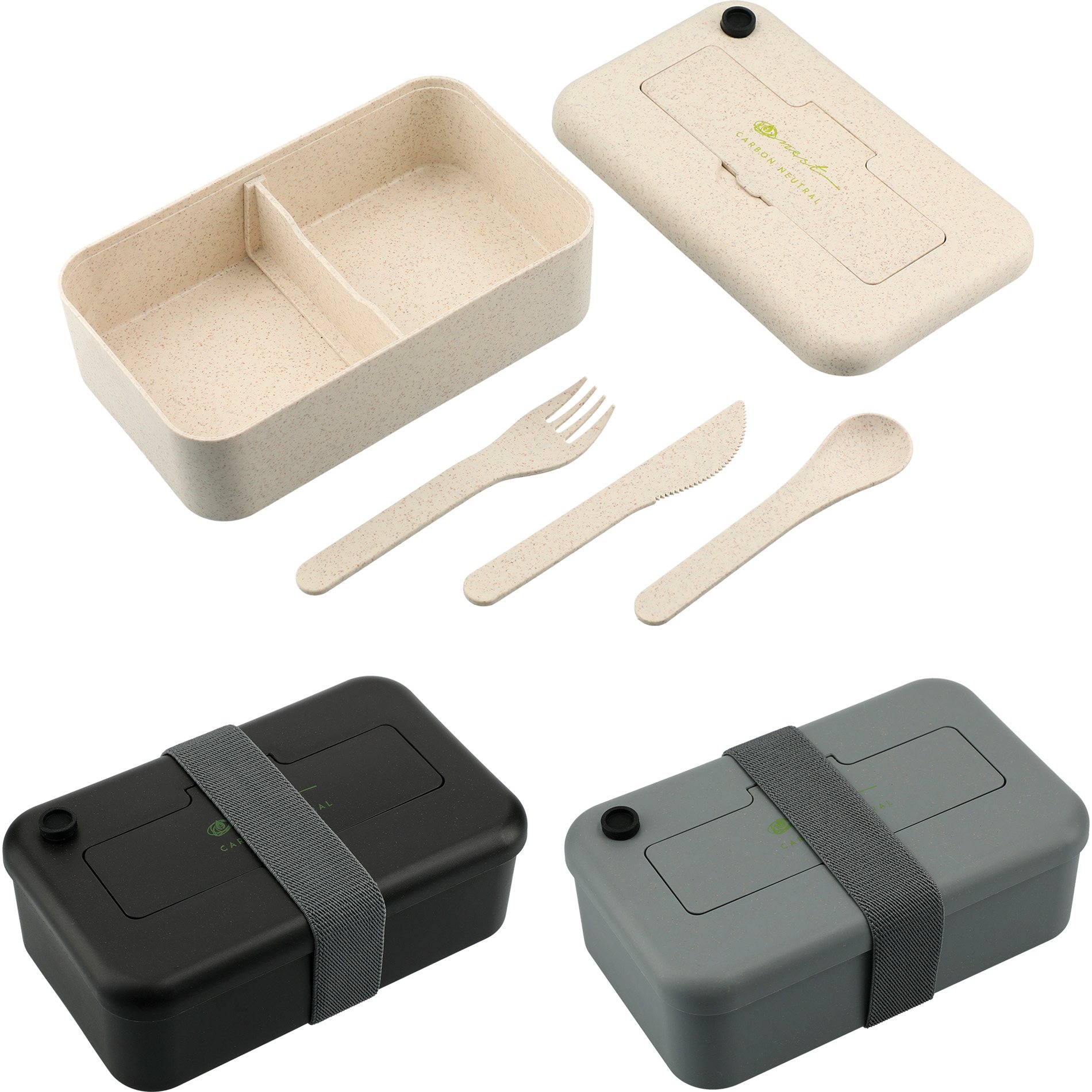 - Three-piece utensil set included.