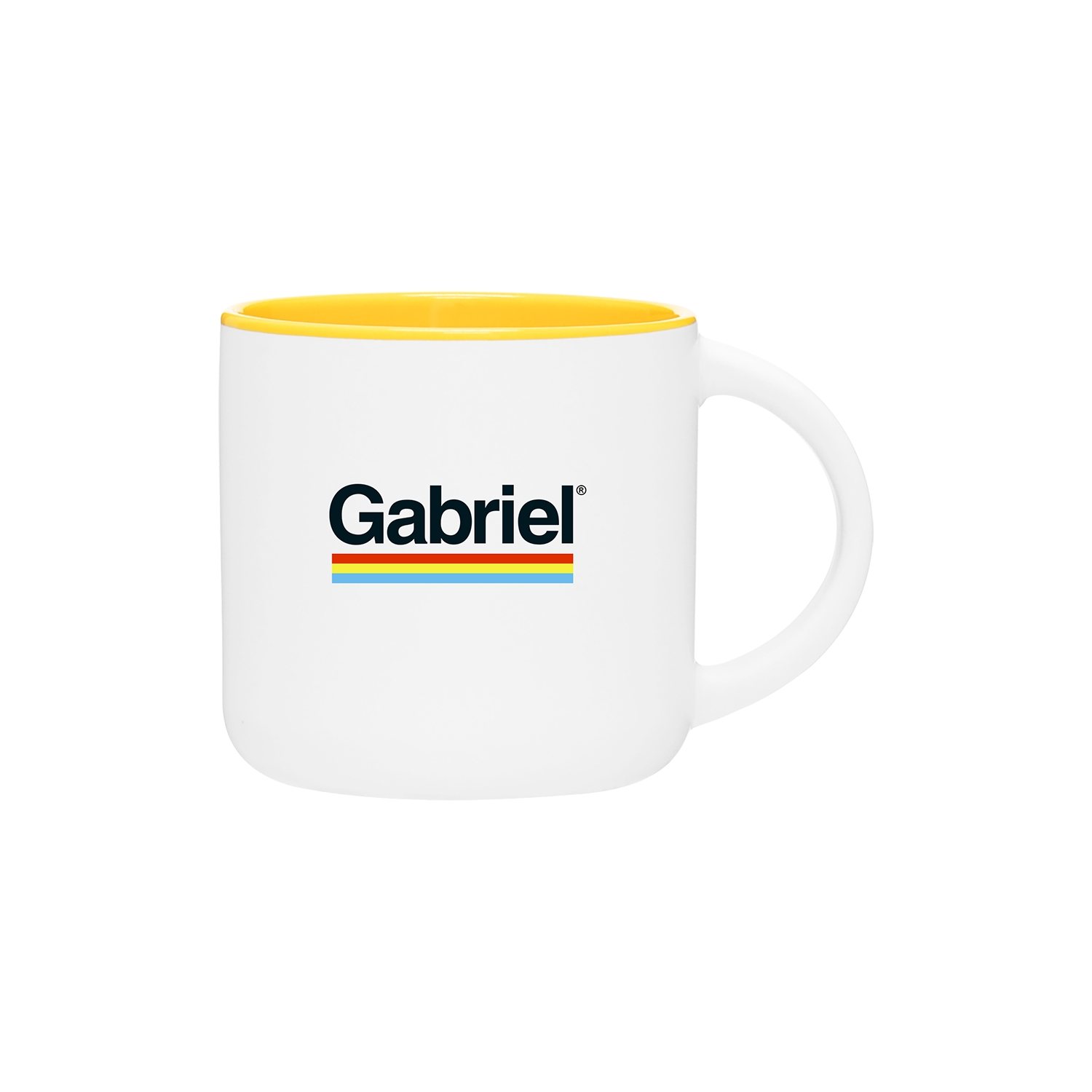 About this Promotional 14 oz Minolo Mug - Matte White - Yellow: