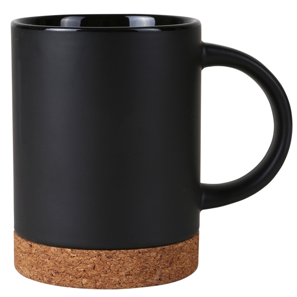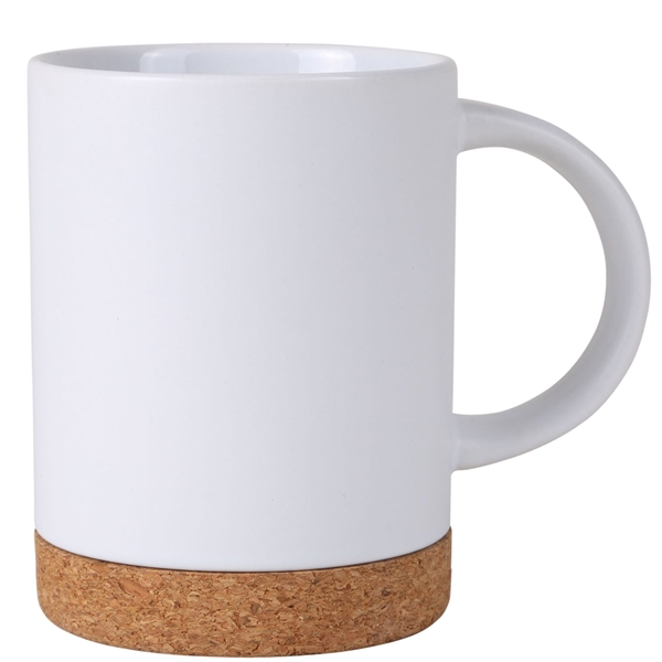 - Ceramic mug with cork base and " D" shaped handle