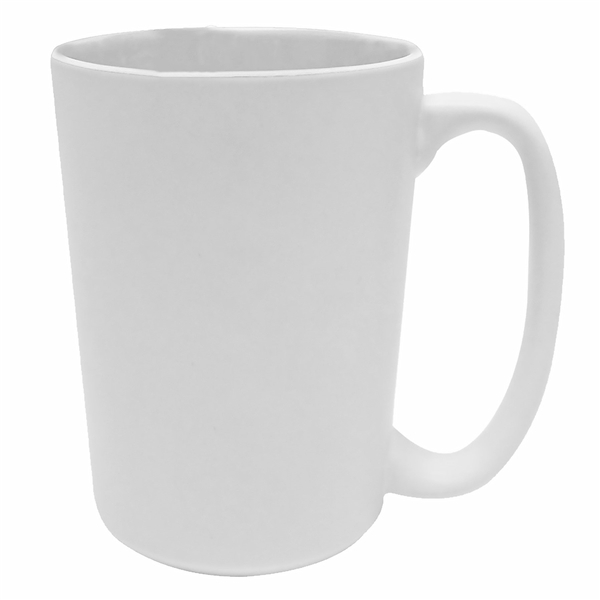 - Ceramic mug with large 'D' shaped handle