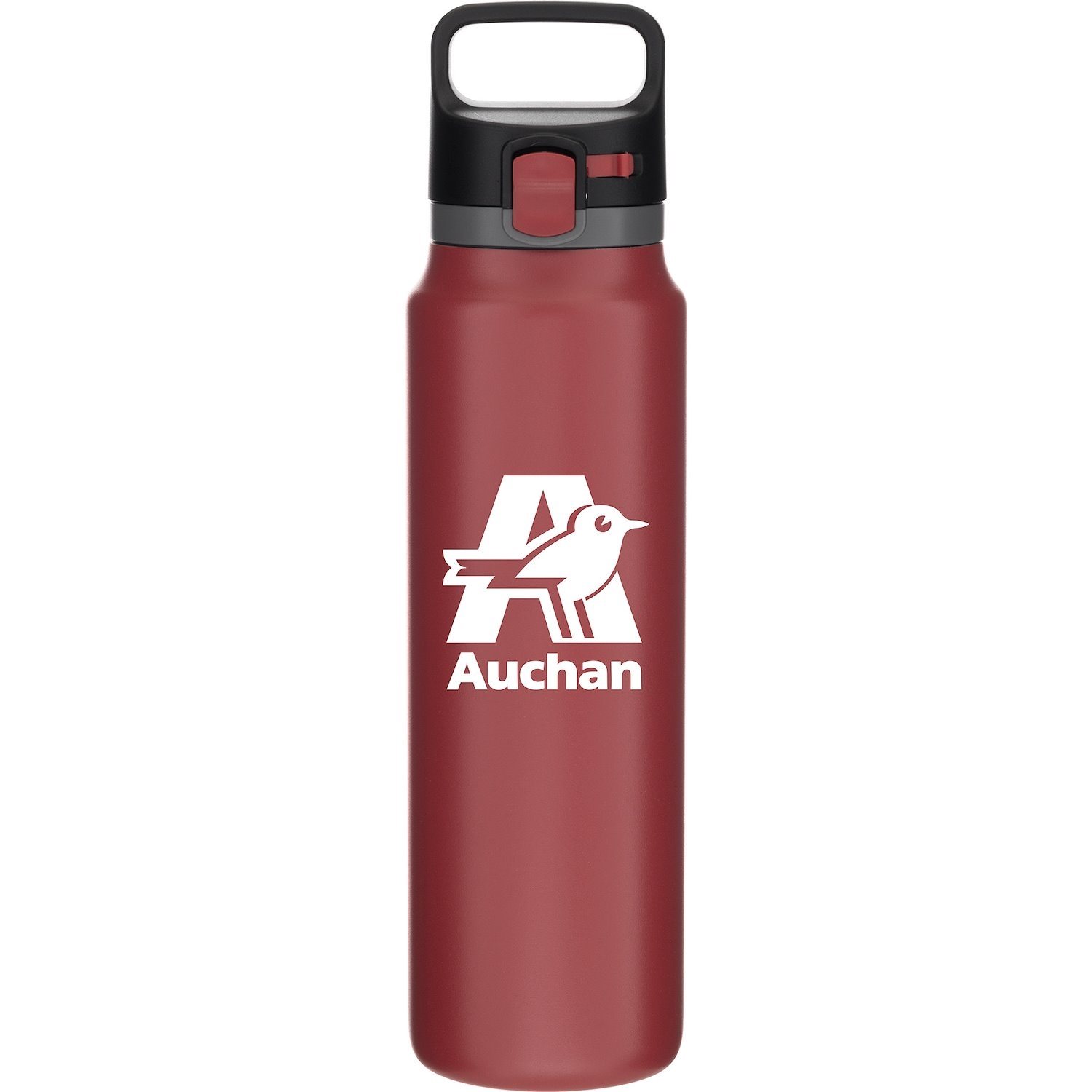 - The threaded lid includes a push-button locking mechanism for secure, one-handed use, while the integrated carrying handle adds grab-and-go convenience.