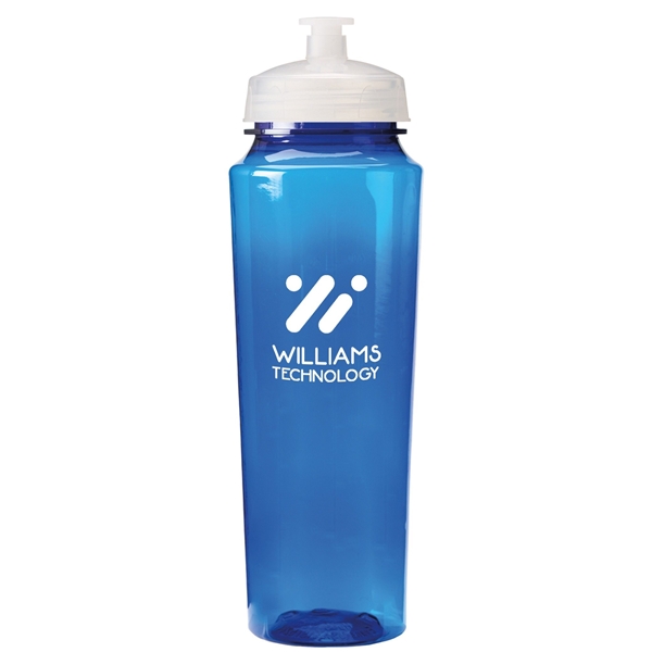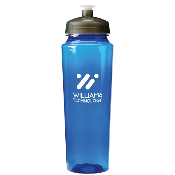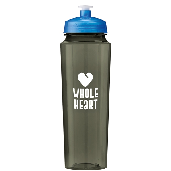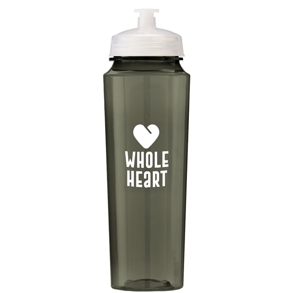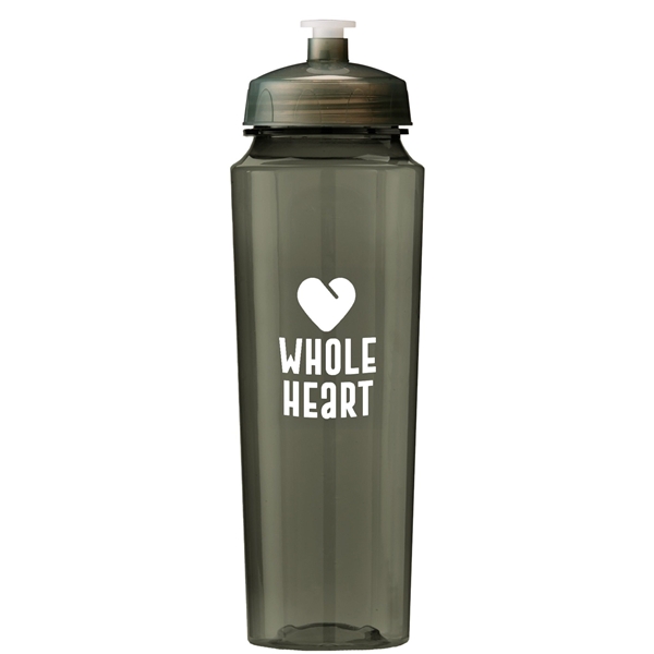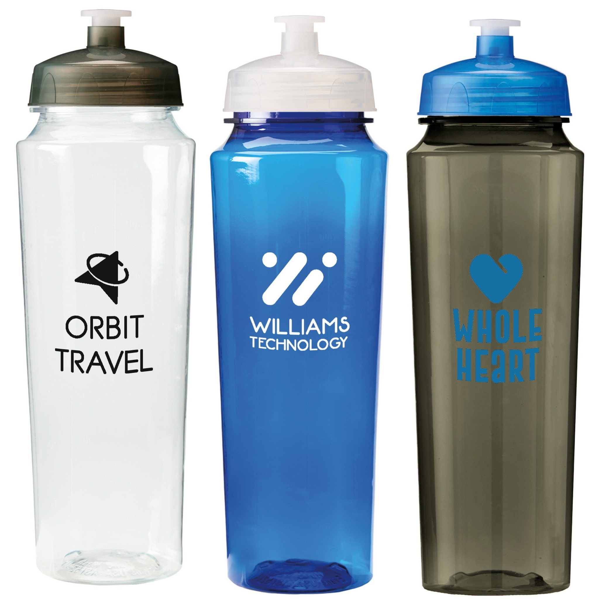 - The PolySure™ Measure bottle is an American-made essential drinkware companion. It's meticulously crafted in the USA from food-grade imported PET resin. It boasts a distinctive tapered body for ergonomic handling. Embossed drink measurements from 100 ml to 700 ml (4 fl. oz to 24 fl. oz) help the user track daily hydration goals. With a high gloss finish, leak-resistant push-pull lid, and wide-mouth design, this bottle is sure to be a go-to water bottle. Hand wash only and BPA-Free.