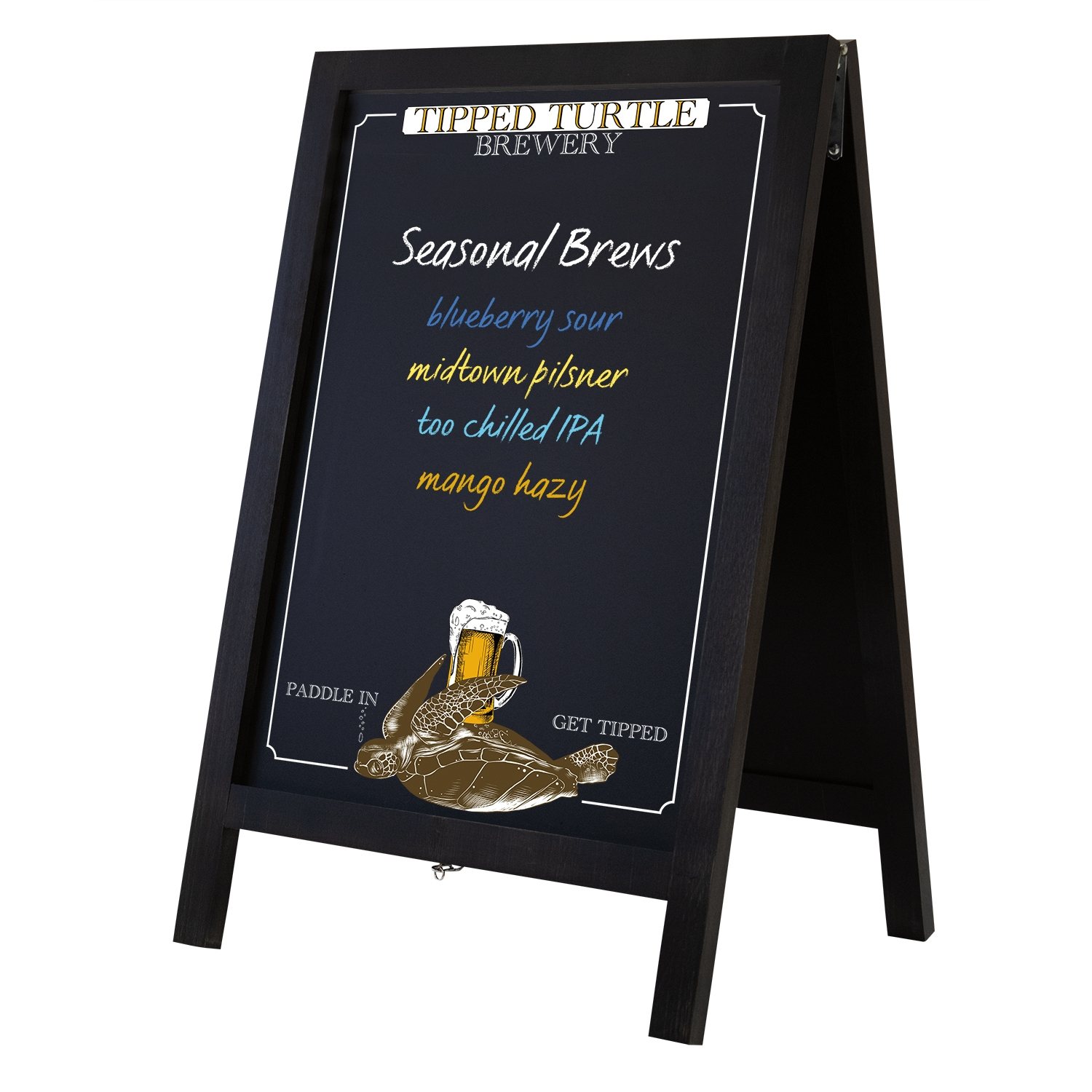 But this isn’t your run-of-the-mill sidewalk sign. With its handcrafted wood frame, customizable chalkboard faces, and sleek real-wood finishes, this A-frame kit makes a standout impression. Designed for indoor adventures and light outdoor exploration (hello, farmers markets!), it’s the trusted solution for businesses who want to stay classy—without using duct tape to get there.
