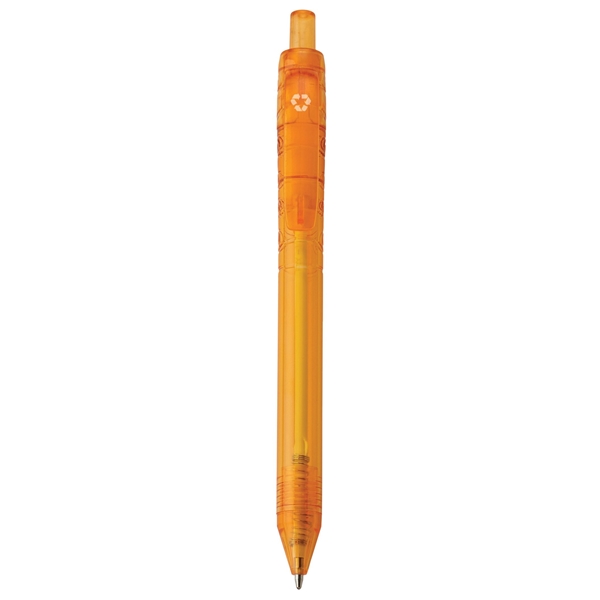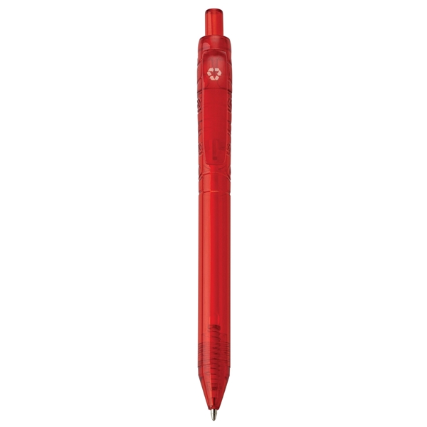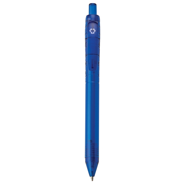 - Recycled plastic push-action pen with a recycled symbol printed on clip.