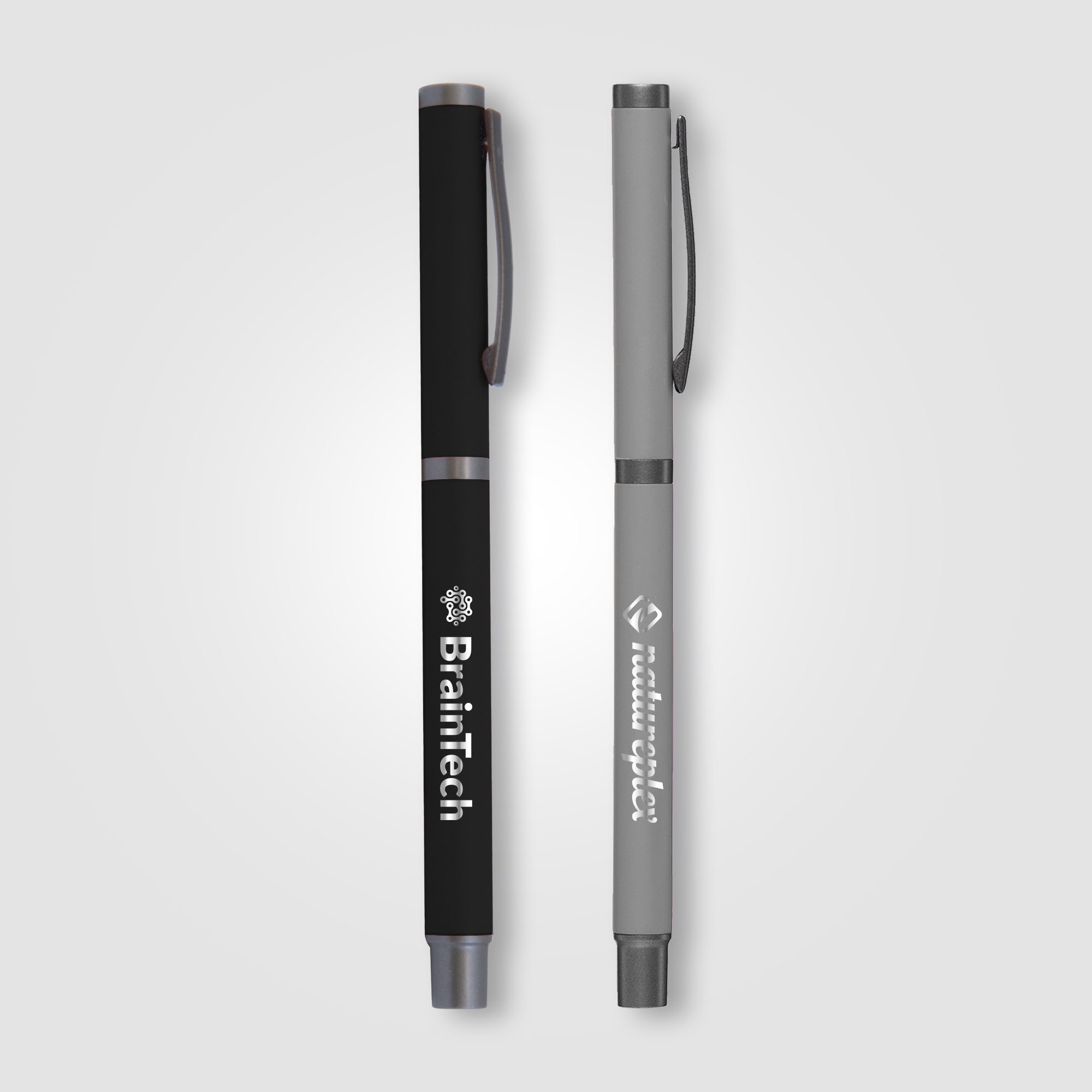 - A soft-touch rubberized finish with gunmetal accents modernizes this classic, capped metal pen.