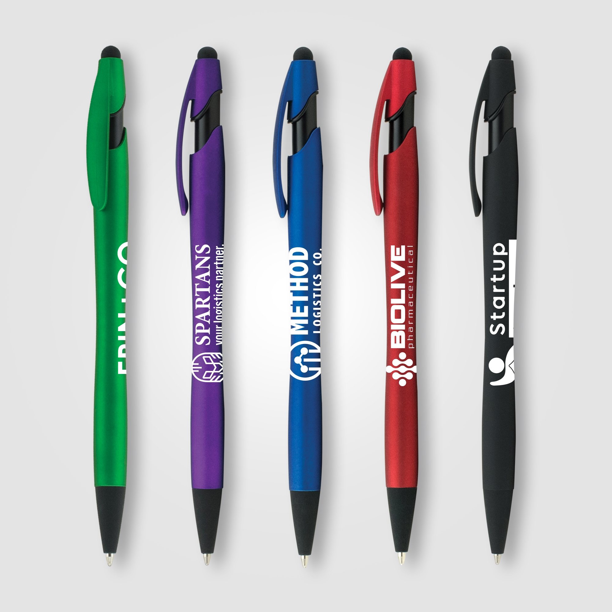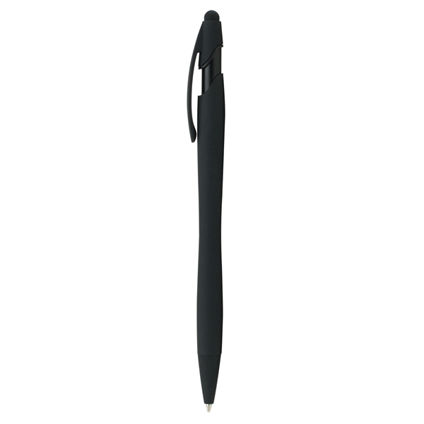 - This medium black ballpoint pen also features a stylus at the top, making this the perfect 2-in-1 advertising gift.