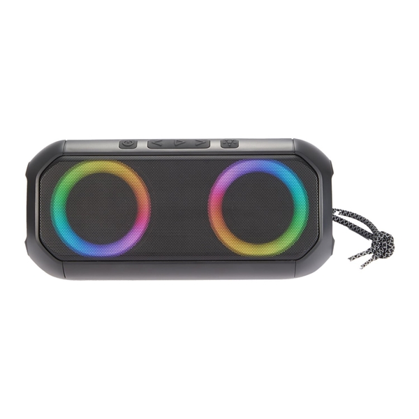 - LED party lights surround the 10-watt speaker drivers and can be adjusted to match the vibe, creating an immersive experience.